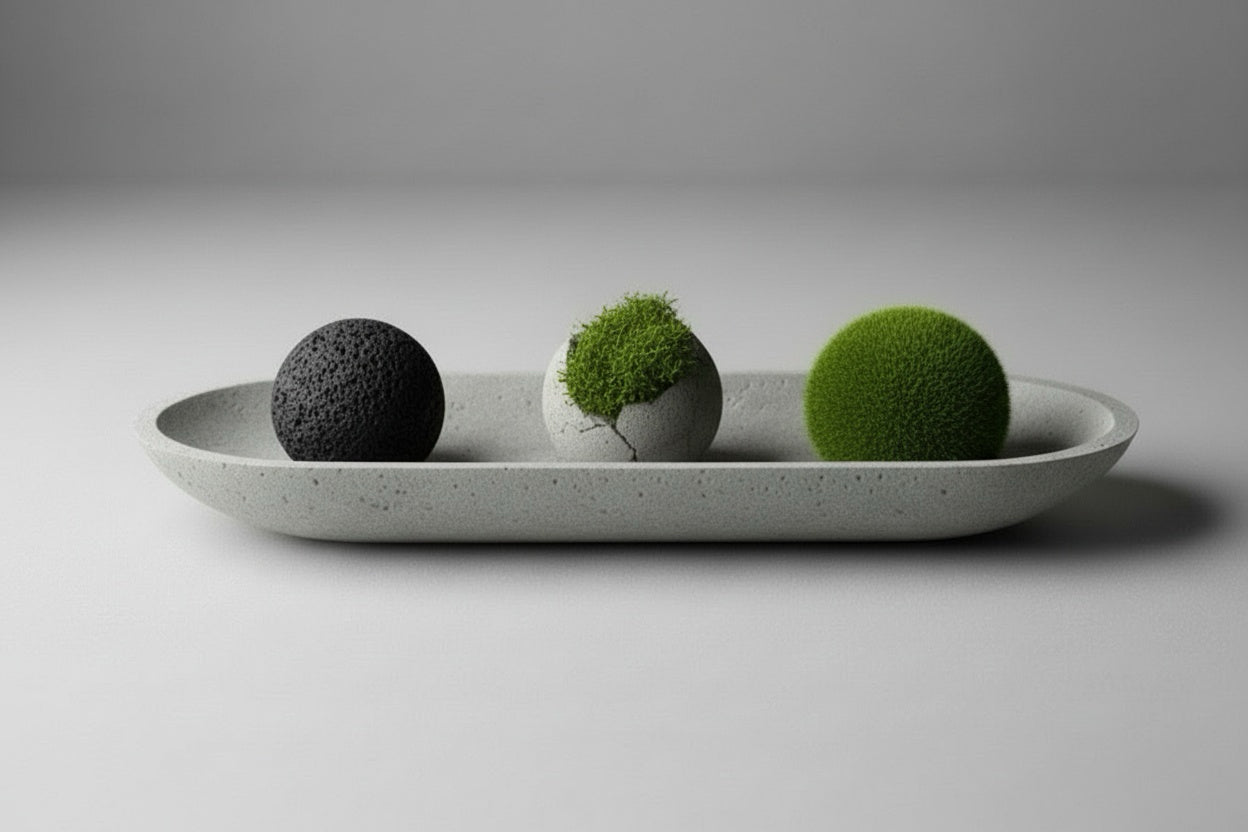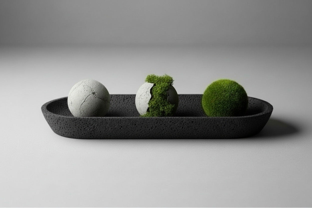 Material: musgos lichen y flat preservados, concreto y tezontle negro.