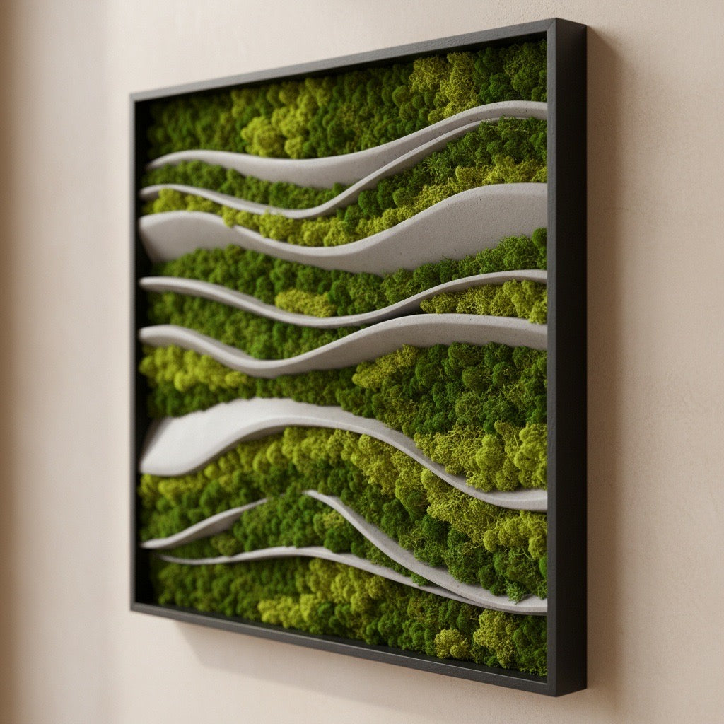 Material: musgo lichen preservado y placas de concreto.